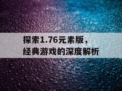 在电子游戏的浩瀚海洋中,有一款游戏以其独特的魅力,吸引了无数玩家的关注和喜爱,那就是1.76元素版,这款游戏以其丰富的游戏内容、独特的玩法和深度的策略性,成为了许多玩家心中的经典之作,本文将深入解析1.76元素版的特点、玩法以及其背后的故事,带领大家一探这款经典游戏的魅力所在。