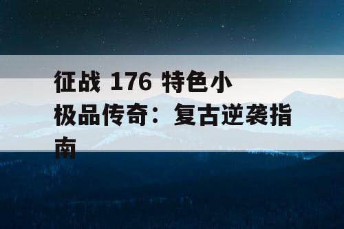 《征战 176 特色小极品传奇》是一款复古逆袭指南,为玩家提供独特的小极品装备和经典的游戏玩法。该游戏以逆袭为主题,让玩家在游戏中体验到逆袭的乐趣和成就感。游戏特色包括丰富的游戏内容、多样的玩法、精美的画面和流畅的操作体验。玩家可以通过不断挑战和升级,获得更强大的装备和技能,最终成为传奇中的佼佼者。该游戏适合喜欢复古传奇游戏的玩家,让他们在游戏中重温经典,享受游戏的乐趣。