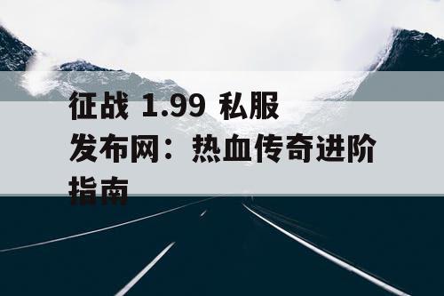 征战1.99私服发布网提供热血传奇进阶指南,为玩家提供丰富的游戏资源和攻略。该网站致力于为玩家带来更好的游戏体验,提供最新的游戏资讯、私服下载、攻略教程等。玩家可以通过该网站快速了解游戏进阶技巧,提升游戏水平,享受更加刺激的战斗体验。该网站还为玩家提供安全、稳定的私服下载服务,让玩家在游戏中畅享无限乐趣。