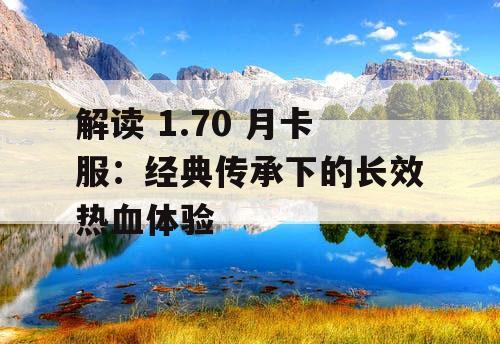 摘要:"1.70月卡服"是一种经典传承下的长效热血体验,为玩家提供稳定、持久的游戏环境。该服以经典游戏内容为依托,注重玩家的长期发展和稳定体验,让玩家在游戏中感受到持久的激情和热血。该服致力于打造一个公平、公正的游戏环境,为玩家提供更好的游戏体验。通过月卡制度,玩家可以享受到更多的游戏福利和特权,增加游戏的乐趣和挑战性。"1.70月卡服"是一个值得尝试的长效游戏体验,让玩家在游戏中畅享经典传承的魅力。"