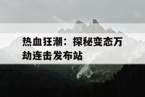 "热血狂潮"是一部引人入胜的探秘作品,主要围绕"变态万劫连击发布站"展开。该发布站提供了一种独特的游戏体验,通过万劫连击的刺激玩法,让玩家感受到热血沸腾的战斗激情。文章详细介绍了发布站的特点、玩法以及其背后的故事,为读者带来了一次别开生面的游戏探秘之旅。